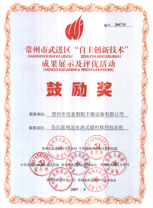 自主創(chuàng)新技術(shù)鼓勵(lì)獎(jiǎng)