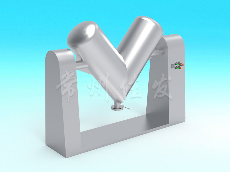 This machine uses mechanical transmission to make the materials inside the asymmetric V-shaped cylinder undergo reciprocating flipping, achieving the goal of uniform mixing.